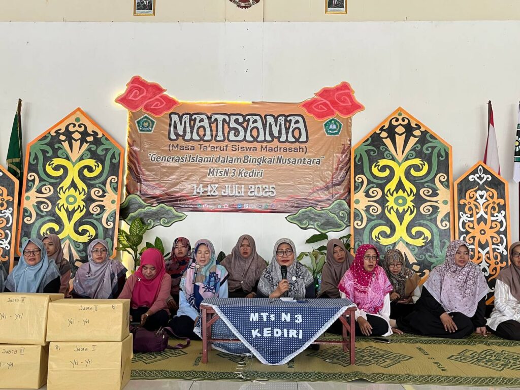 “Semoga kegiatan matsama ini bisa menjadi awal yang baik dalam mengenal lingkungan madrasah dan semoga dapat menumbuhkan rasa kebersamaan sebagai bagian dari keluarga besar MTsN 3 Kediri. Jadikan MTsN 3 Kediri sebagai tempat tumbuh dan berkembang, baik secara akademik maupun spiritual,” ungkap Kepala Madrasah dalam sambutannya. Pada kesempatan itu juga diumumkan juara kelompok terbaik, yel-yel terbaik, kostum terbaik, video perkenalan terbaik, dan siswa teraktif. (hilma/hms)