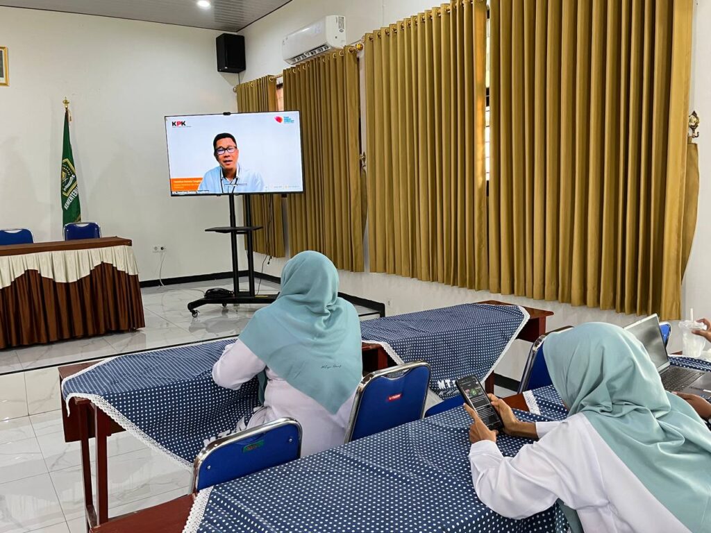 Sosialisasi tersebut sebagai komitmen serta tindak lanjut kerjasama Kementerian Agama dan Komisi Pemberantasan Korupsi (KPK) untuk melawan maraknya praktik-praktik Korupsi, Kolusi, dan Nepotisme (KKN).Dengan mengikuti kegiatan ini, MTsN 3 Kediri berkomitmen untuk terus mendukung upaya pemerintah dalam mewujudkan tata kelola pemerintahan yang bersih, transparan, dan berkeadilan. (laili/hilma/hms)