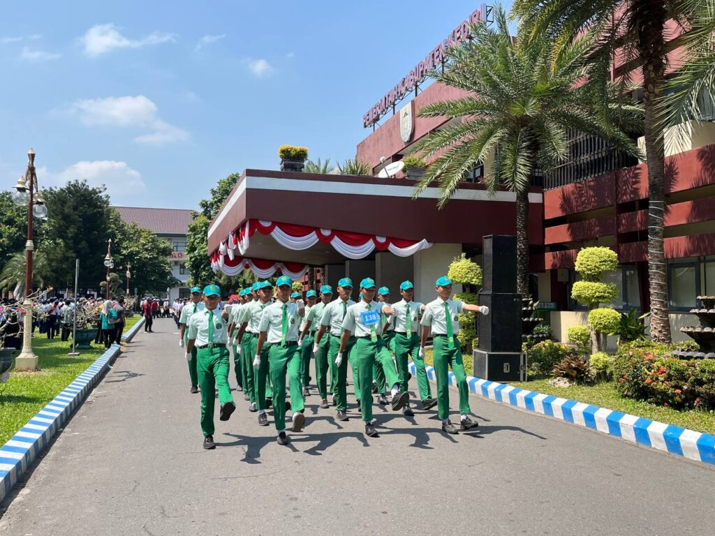 Kab. Kediri (MTsN 3) – Dua pleton terbaik MTsN 3 Kediri ambil bagian pada Lomba Gerak Jalan Tingkat SMP/MTs Se-Kabupaten Kediri dalam Rangka Peringatan Hari Ulang Tahun (HUT) ke-80 Republik Indonesia, (7/8). Diberangkatkan Kepala Dinas Pendidikan Kabupaten Kediri, Mokhamat Muhsin di Depan Kantor Pemkab Kediri, pada pukul 08.00 wib.“Alhamdulillah hari ini kita dapat melaksnakaan lomba gerak jalan dengan baik tertib, tunjukan kekompakan dan kesolidan kalian semua selamat dan sukses. Dirgahayu yang ke-80 Republik Indonesia, Bersatu, Berdaulat, Rakyat Sejahtera dan Indonesia Maju,” tutur Kepala Dinas Pendidikan.