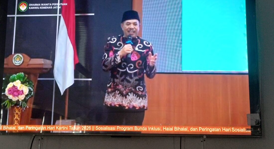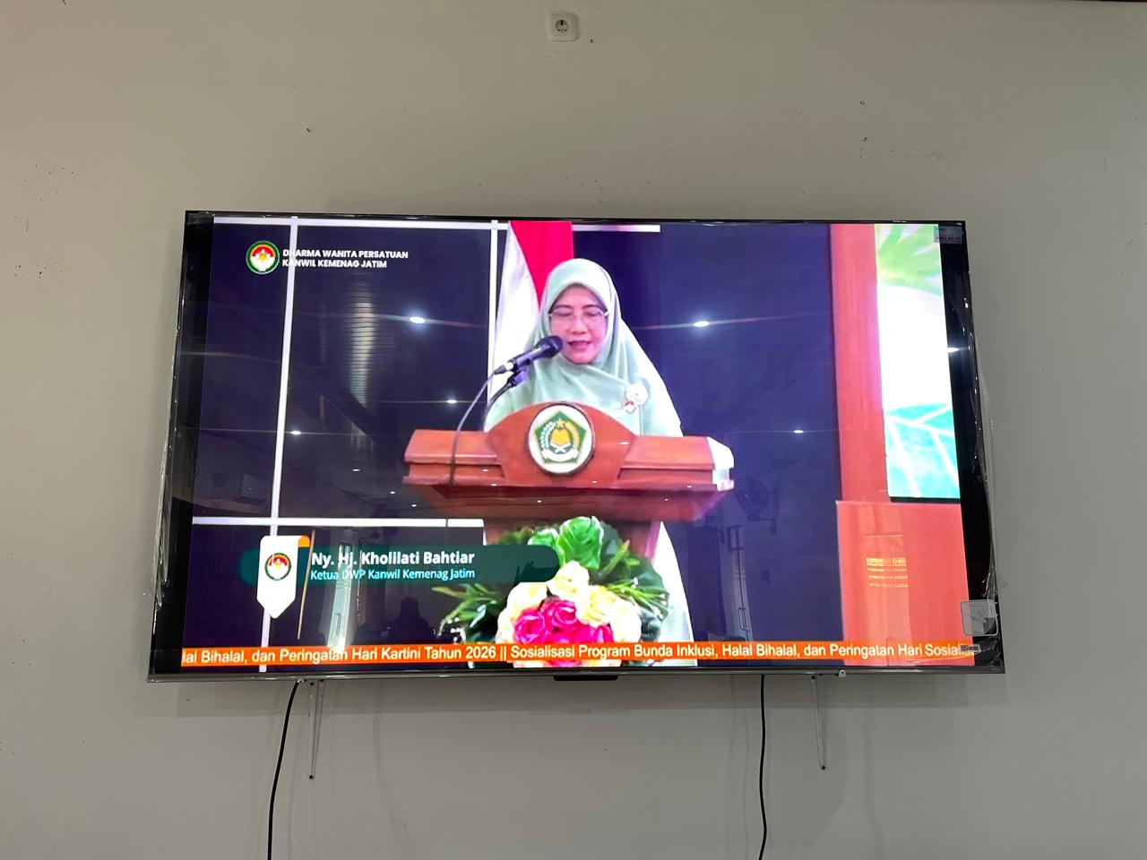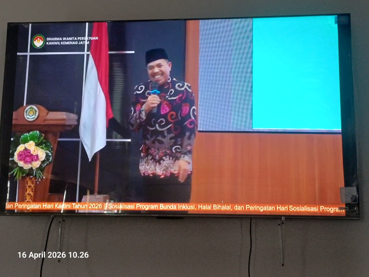Kab. Kediri (MTsN 3) – Dharma Wanita Persatuan (DWP) MTsN 3 Kediri mengikuti kegiatan Zoom Meeting Sosialisasi Program Bunda Inklusi, Halal Bihalal, dan Peringatan Hari Kartini Tahun 2026 yang diselenggarakan oleh Dharma Wanita Persatuan Kantor Wilayah Kementerian Agama Provinsi Jawa Timur, Kamis (16/4/2026).