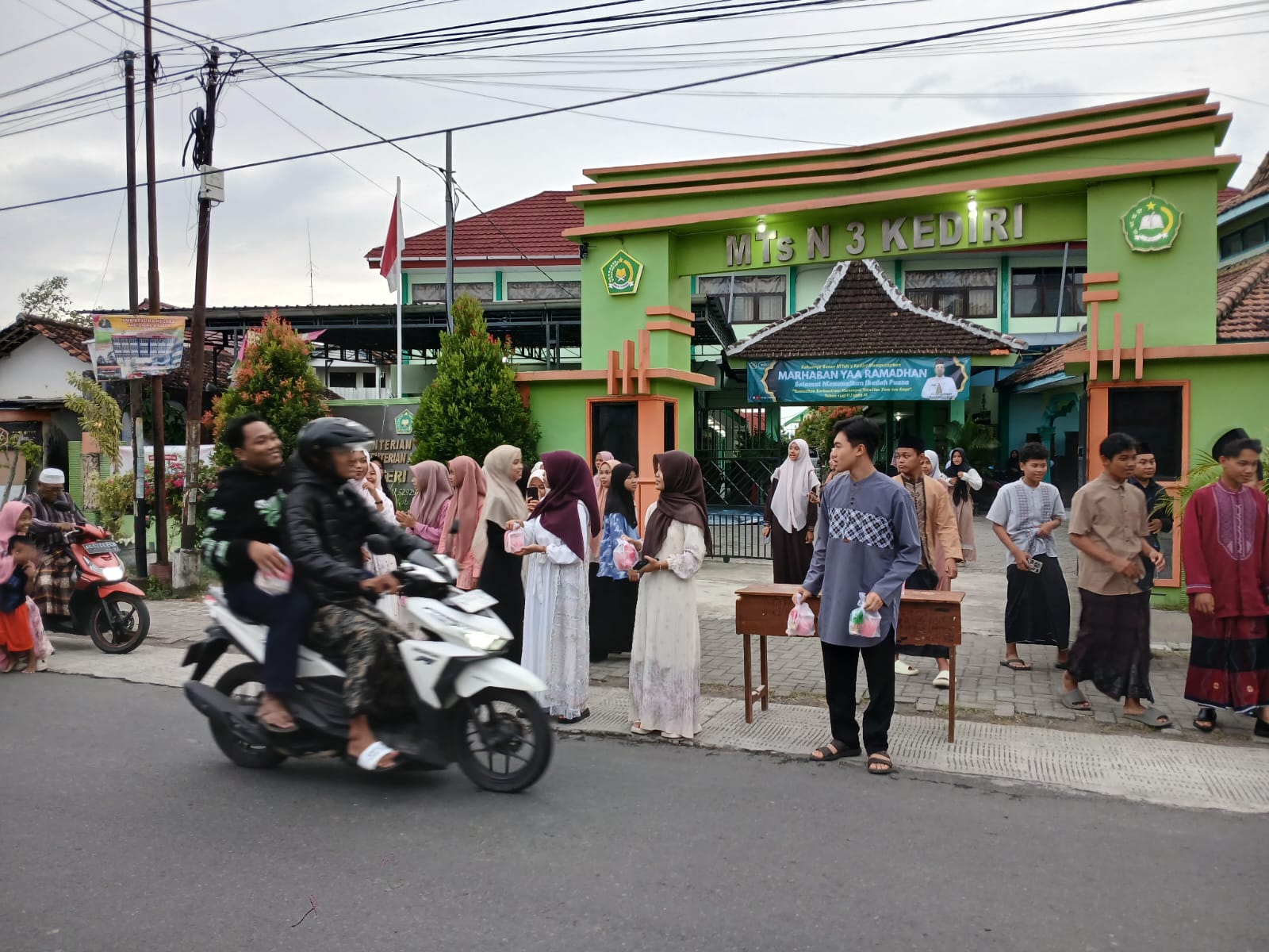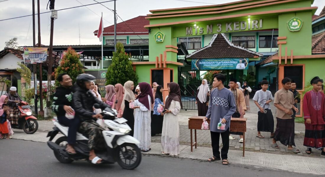 Kab. Kediri (MTsN 3) — Organisasi Siswa Intra Madrasah (OSIM) MTsN 3 Kediri menggelar kegiatan berbagi takjil kepada masyarakat sebagai bentuk kepedulian dan semangat berbagi di bulan suci Ramadhan, (7/3). Kegiatan ini berlangsung dengan penuh kebersamaan dan diikuti oleh pengurus OSIM, pembina, serta alumni OSIM.