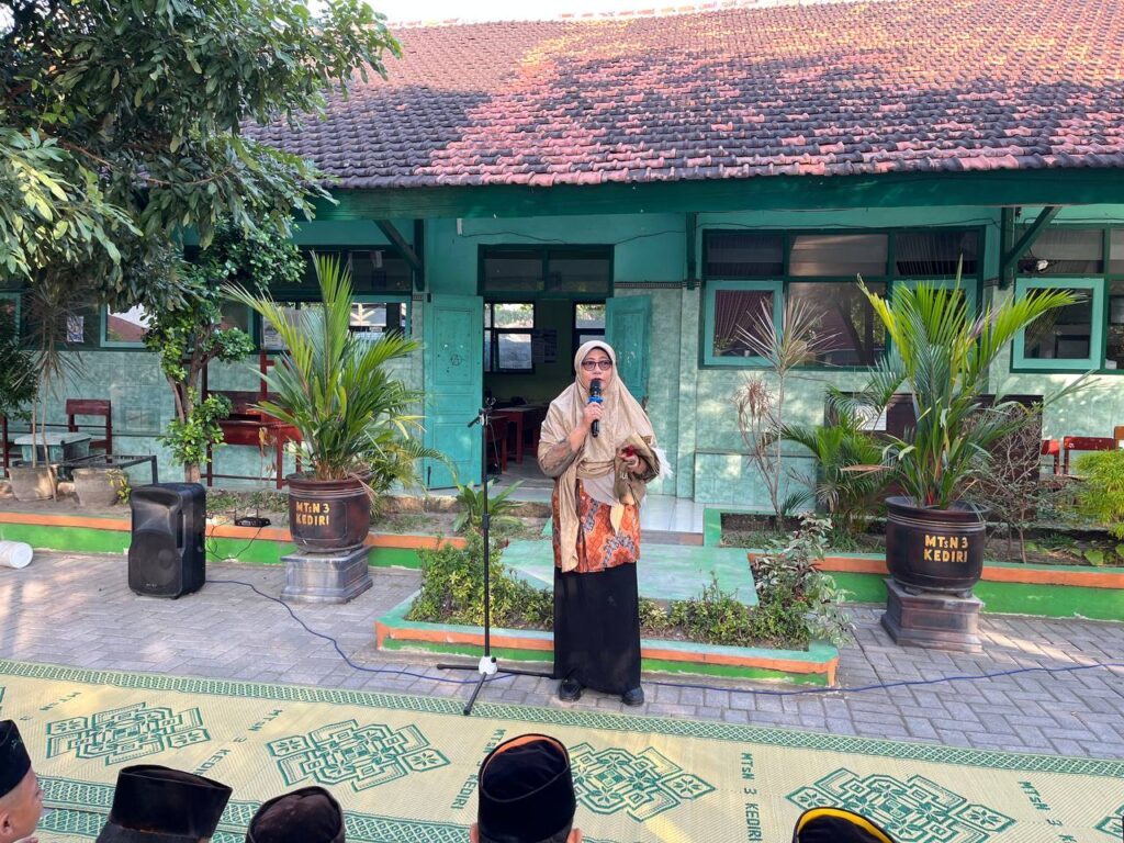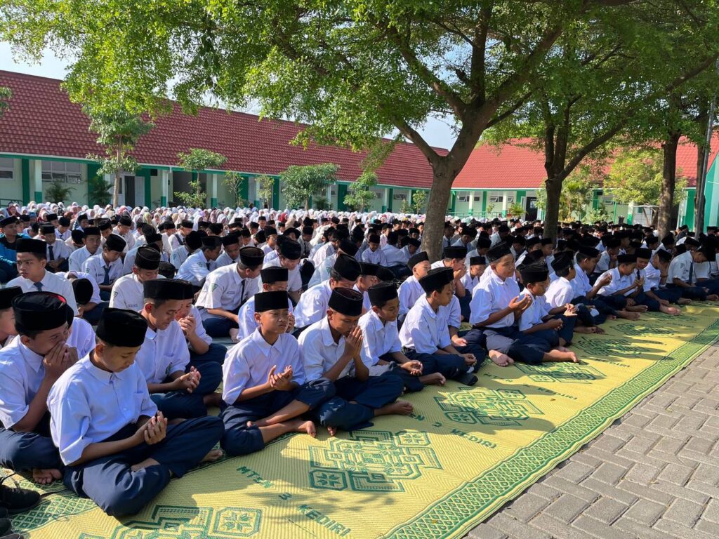 Kab. Kediri (MTsN 3) – Bertempat di lapangan madrasah, MTsN 3 Kediri menggelar doa bersama dan istighosah untuk Keselamatan Bangsa Indonesia, Senin (01/09/2025). Kegiatan diawali dengan sholat dhuha berjamaah kemudian dilanjutkan doa bersama dan istighosah yang dipimpin oleh Iswahyudin.