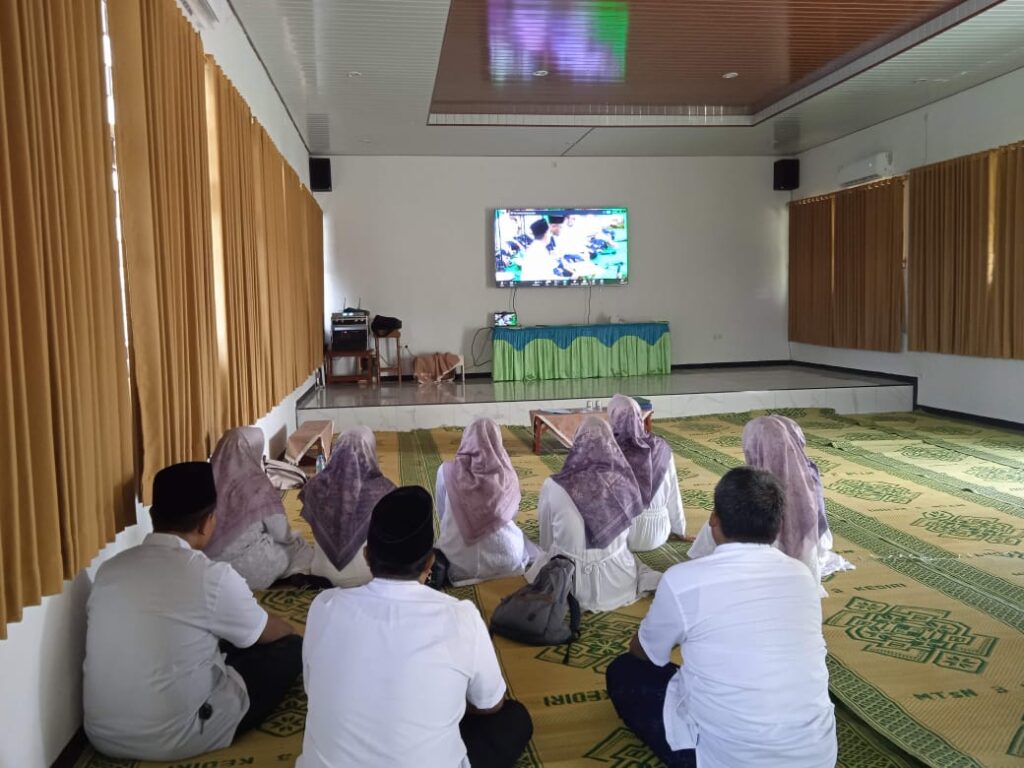 Kab. Kediri (MTsN 3) – Dalam rangka mensukseskan Hari Amal BaktI (HAB) ke-80 Kemenag dengan tema “Umat Rukun dan Sinergi, Indonesia Damai dan Maju”, MTsN 3 Kediri mengadakan dan mengikuti Khotmil Quran secara daring melalui Zoom dengan Kantor Wilayah Kemenag Jawa Timur pada Jumat (2/1/). Kegiatan Khotmil Quran ini diikuti oleh seluruh pegawai dan guru MTsN 3 Kediri dengan khidmat yang dipandu oleh Iswahyudin, S.Pd.I sebagai imam. Kegiatan yang berlangsung sejak pukul 07.30 WIB di meeting room madrasah.