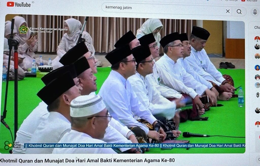 Rangkaian kegiatan pada hari ini yakni Khotmil Quran, doa Khotmil Quran, Istighosah, Doa Munajat HAB, dan Pembinaan dari Kepala Kantor Wilayah Kemenag Jawa Timur Dr. H. Akhmad Sruji Bahtiar, M.Pd.I. Dalam sambutannya, beliau mengajak seluruh ASN untuk mengubah paradigma dalam bekerja. “Jika selama ini kita bekerja karena takut kepada pimpinan atau karena rutinitas belaka, ubahlah. Jadikan semua yang kita lakukan sebagai bentuk pengabdian kepada Allah SWT. Mari kita introspeksi diri, memperbaiki yang kurang, dan meningkatkan yang telah baik,” ujar beliau.