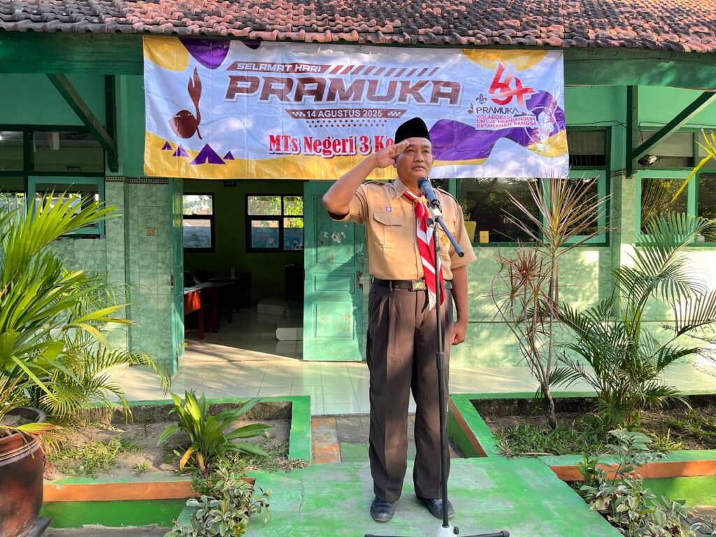 Kab. Kediri (MTsN 3) – Pelaksanaan Upacara Peringatan Hari Pramuka ke-64 di MTsN 3 Kediri bertempat di lapangan madrasah, Kamis 14 Agustus 2025. Upacara tersebut di ikuti oleh seluruh siswa kelas 7,8, dan kelas 9, sedangkan pembina upacara adalah Zainu Arifin. Pada kesempatan tersebut beliau membacakan amanat dari Kwartir Nasional Gerakan Pramuka Yaitu Komjen Pol (Purn) Drs . Budi Waseso.