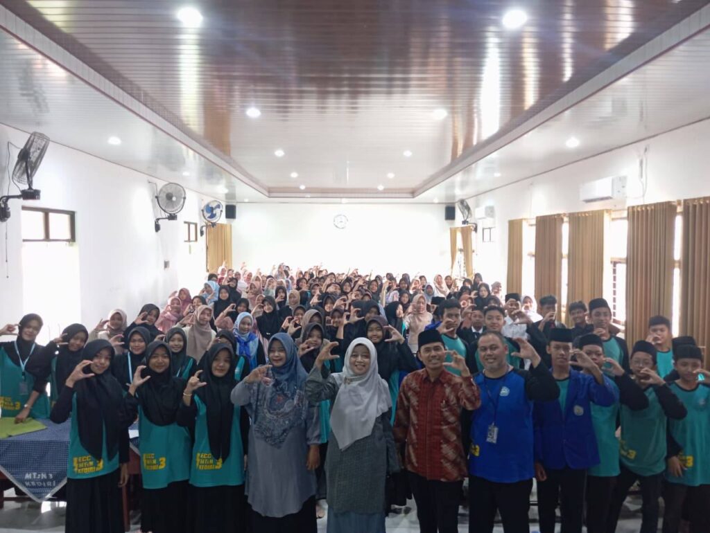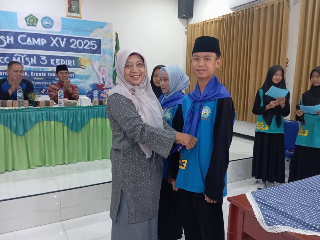 Kab. Kediri (MTsN 3) – MTsN 3 Kediri resmi melaksanakan kegiatan English Camp XV Tahun 2025 pada Minggu, (9/11). Kegiatan yang diprakarsai ekstrakurikuler Bahasa Inggris ECC (English Club Community) diikuti kurang lebih 80 peserta dari kelas VII, VIII, dan IX. Bertempat di ruang pertemuan madrasah acara pembukaan diikuti wakil kepala madrasah dan pembina ECC.