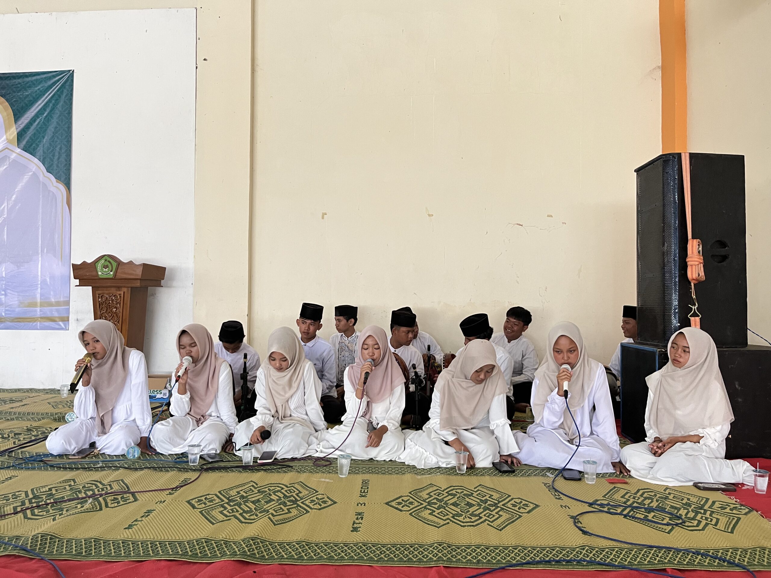 Kegiatan di MTsN 3 Kediri diawali dengan pembacaan ayat suci Al-Qur’an oleh salah satu siswa, yang menghadirkan suasana religius, khidmat, dan penuh ketenangan bagi seluruh peserta. Acara kemudian semakin semarak dengan penampilan hadroh kolaborasi siswa bersama bapak dan ibu guru yang melantunkan shalawat, menciptakan nuansa kekhusyukan sekaligus mempererat kebersamaan warga madrasah. Selain itu, para siswa juga menampilkan lagu-lagu islami yang menambah semangat serta memeriahkan rangkaian kegiatan.