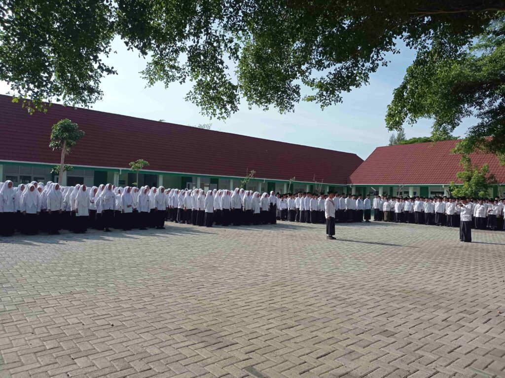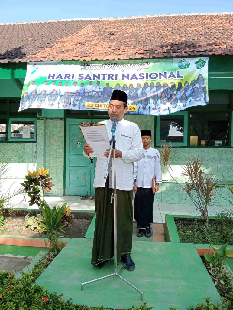 Kab. Kediri (MTsN 3) – Dengan penuh khidmat seluruh guru, karyawan, dan siswa mengikuti Apel peringatan Hari Santri Nasional (HSN) Tahun 2024 di lapangan MTsN 3 Kediri, (22/4). Peringatan HSN pertama kali diadakan pada tanggal 22 Oktober 2015 sesuai Keputusan Presiden. Makna peringatan HSN ini yakni untuk mengenang perjuangan pendahulu kita dari golongan kyai dan santri mempertahankan Kemerdekan Republik Indonesia. Harapannya melalui peringatan tersebut dapat sebagai teladan dan membangkitkan rasa nasionalisme pada diri.