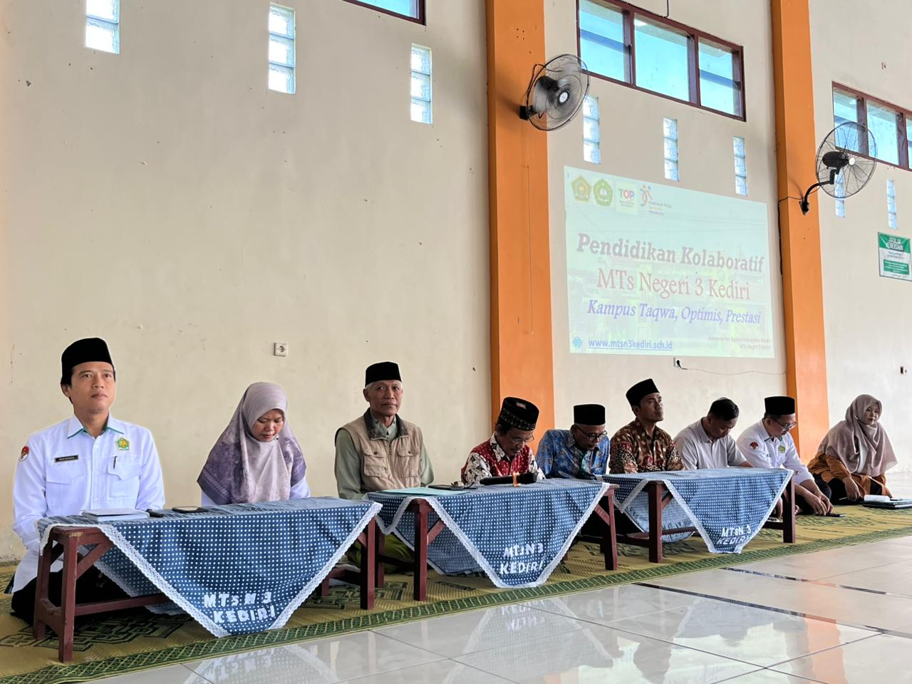 Pertemuan ini dihadiri oleh Kepala MTsN 3 Kediri, Doni Setiawan, Ketua PMBM Miratunissa, Kepala Urusan Tata Usaha Lailatul Fitriyah, jajaran komite madrasah, serta para wali murid. Dalam kesempatan tersebut disampaikan bahwa jumlah calon peserta didik yang diterima melalui jalur afirmasi dan prestasi sebanyak 245 peserta didik.