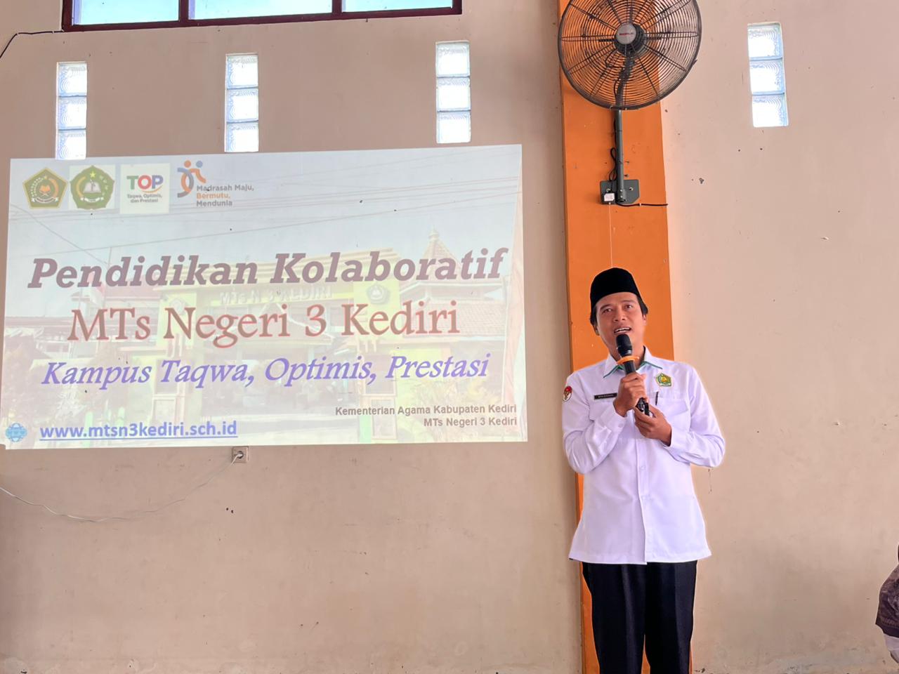 “Kami mengucapkan terima kasih kepada para wali murid yang telah hadir dalam pertemuan ini. Selamat kepada para calon peserta didik yang telah berhasil diterima di MTsN 3 Kediri melalui jalur afirmasi dan prestasi,” ujar Kepala MTsN 3 Kediri, Doni Setiawan, dalam sambutannya.