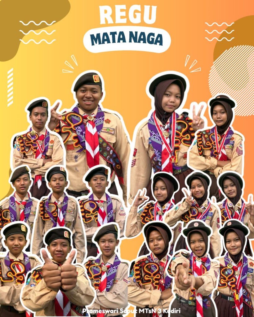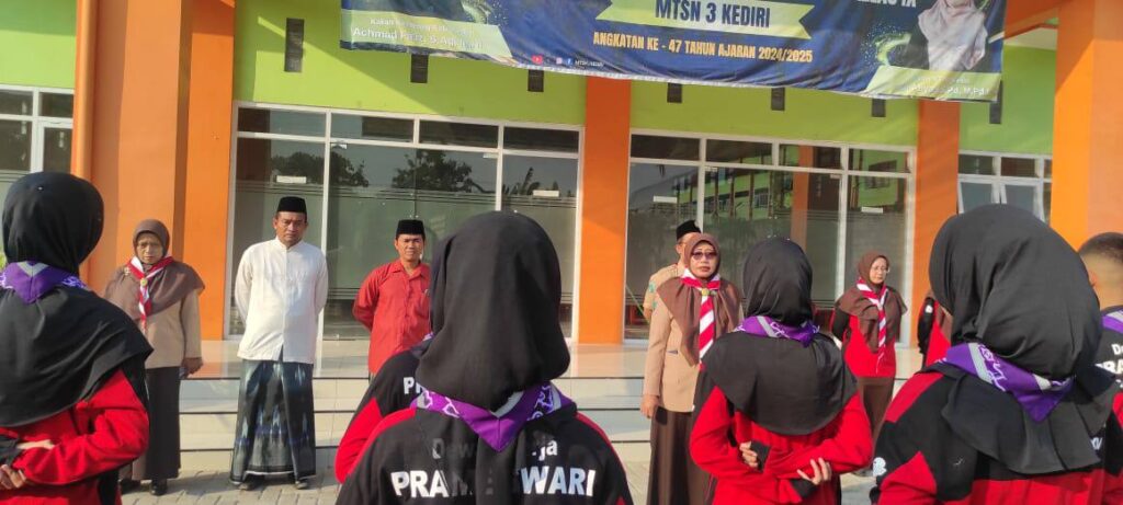 Kab. Kediri (MTsN 3) – Sebanyak 16 Siswa MTsN 3 Kediri yang tergabung di kelompok putra (regu naga) dan kelompok putri (regu matahari) mengikuti Jambore Penggalang SMP/MTs Kwartir Cabang Kabupaten Kediri yang bertempat di Glamping Lembah Kelud, Kecamatan Ngancar, Jumat (10/10/2025). Diberangkatkan langsung oleh Siti Aliyah Kamabigus MTsN 3 Kediri dengan didampingi Pembina Pramuka MTsN 3 Kediri (Prameswari) di Halaman Aula As-Sholih.