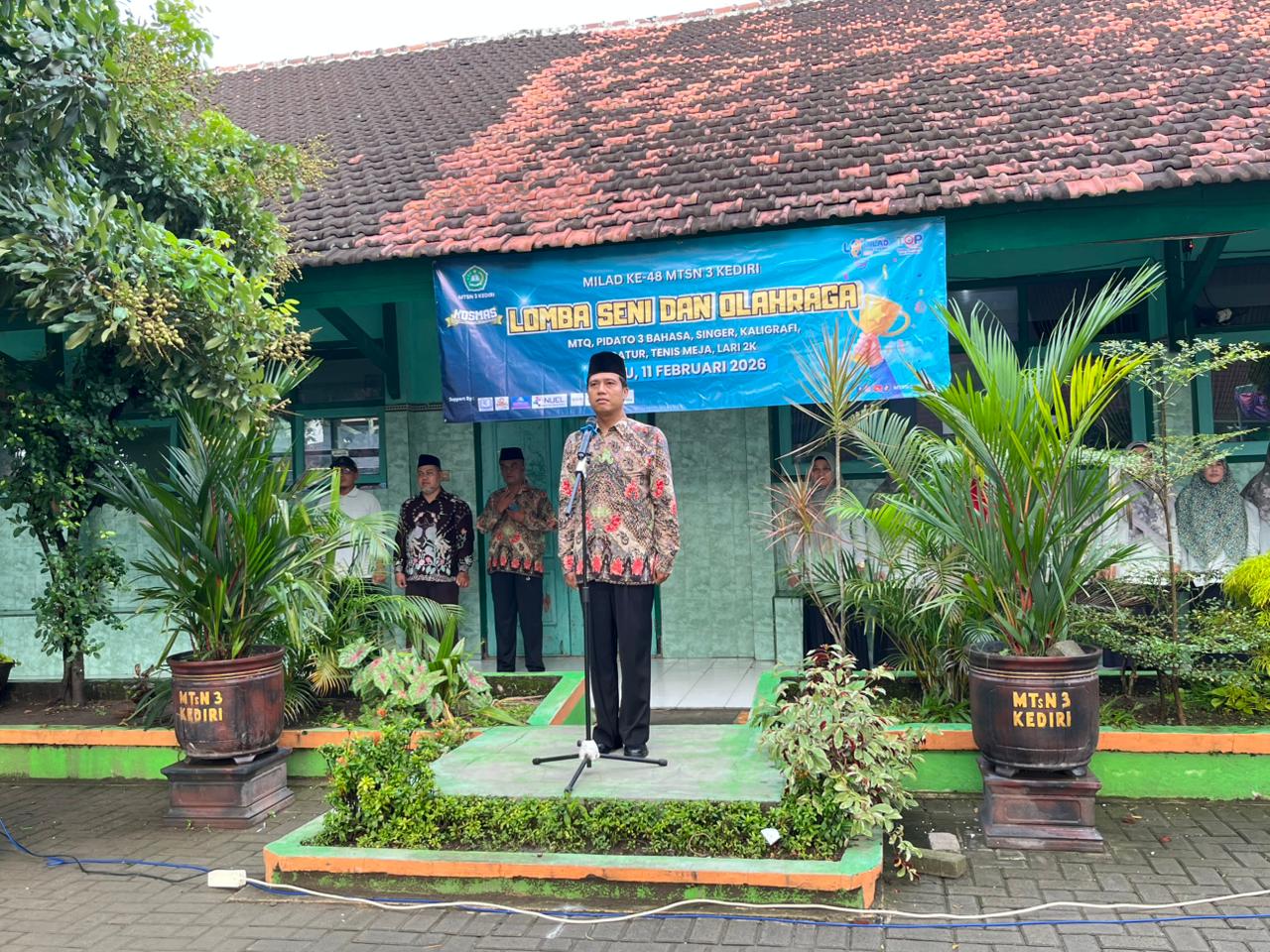 Pelaksanaan lomba diawali dengan apel pembukaan di lapangan madrasah yang diikuti seluruh peserta, panitia, serta guru pendamping. Kepala MTsN 3 Kediri, Doni Setiawan, memimpin langsung kegiatan tersebut sekaligus memberikan sambutan. Dalam pesannya, ia menyampaikan apresiasi atas semangat para peserta serta kerja keras panitia dalam menyukseskan lomba.