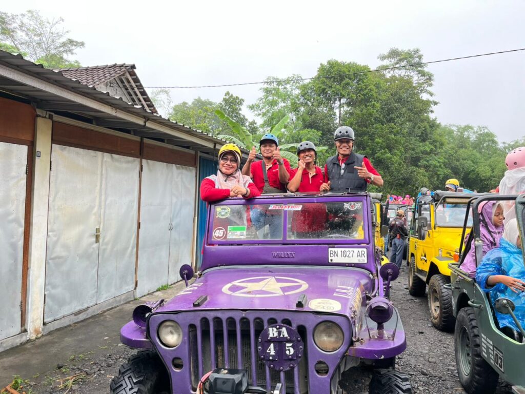 Tujuan pertama adalah menuju Lava Tour Merapi yang mana siswa-siswi dengan mengendarai Jepp melakukan tour di Kawasan Gunung Merapi. Di sepanjang perjalanan dengan disuguhkan pemandangan yang hijau serta dipandu tour guide dijelaskan kondisi Gunung Merapi pasca erupsi.