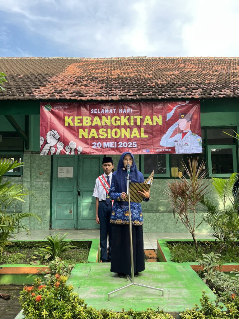 Kab. Kediri (MTsN 3) – Bertempat di lapangan madrasah, MTsN 3 Kediri mengadakan upacara peringatan Hari Kebangkitan Nasional (Harkitnas) ke-177, (20/5). Peringatan tahun ini mengusung tema “Bangkit Bersama Wujudkan Indonesia Kuat”. Upacara yang diikuti seluruh guru, karyawan, dan Siswa Kelas 7 dan 8 berjalan dengan khidmat.
